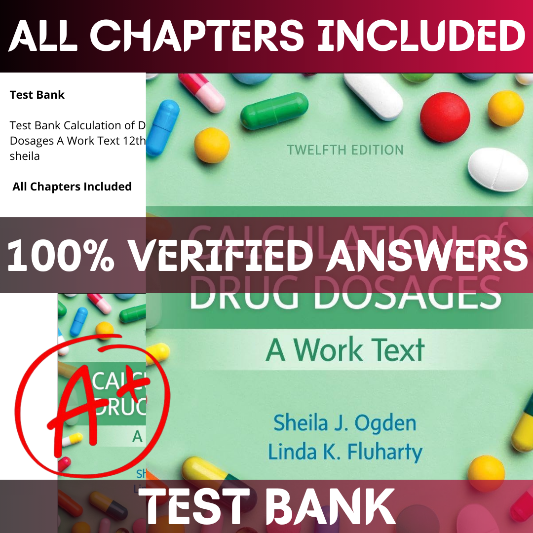 Prepare smarter and score higher with the Test Bank for Test Bank Calculation of Drug Dosages A Work Text 12th Edition sheila. This comprehensive resource gives you hundreds of exam-style practice questions organized by chapter — designed to help you master the material, identify weak areas, and walk into your exam fully prepared.