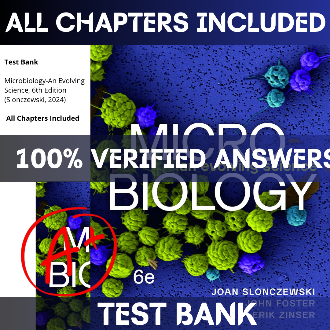 - Fully aligned with Test Bank for Microbiology-An Evolving Science, 6th Edition (Slonczewski, 2024) (ISBN: 978-1324033608)