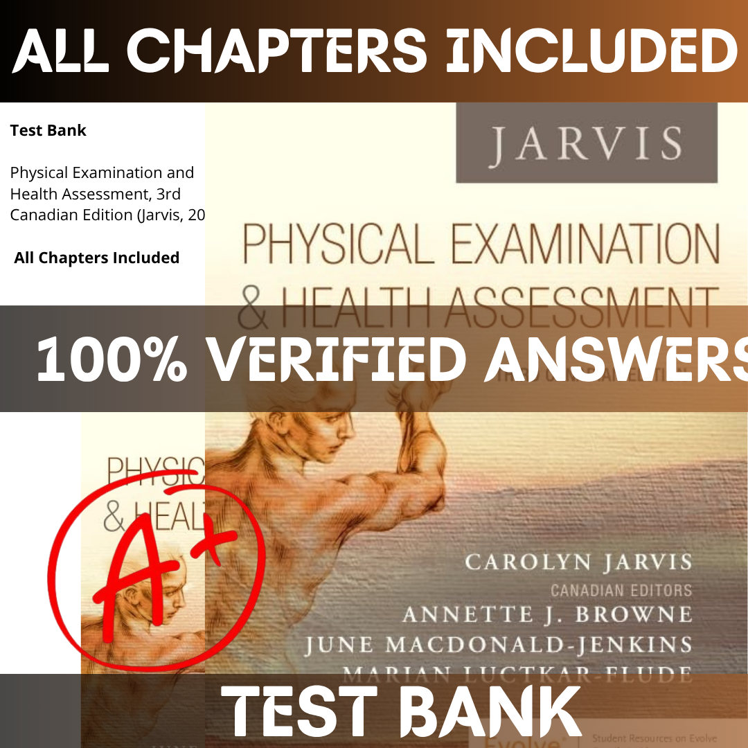 - Fully aligned with Test Bank for Physical Examination and Health Assessment, 3rd Canadian Edition (Jarvis, 2019) (ISBN: 978-1771721547)